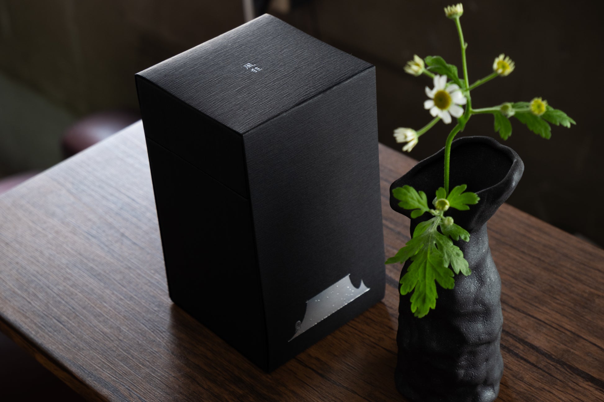 花瓶の黒は、「鉄釉(鉄黒釉)」と呼ばれる方法で発色させています。これは釉薬に含まれる酸化鉄によって呈色反応を引き起こす方法で、瀬戸焼の代表的な施釉方法の一つです。表面のざらざらとした質感と落ち着きのある静かな黒が、「巌」の雰囲気を醸し出します。