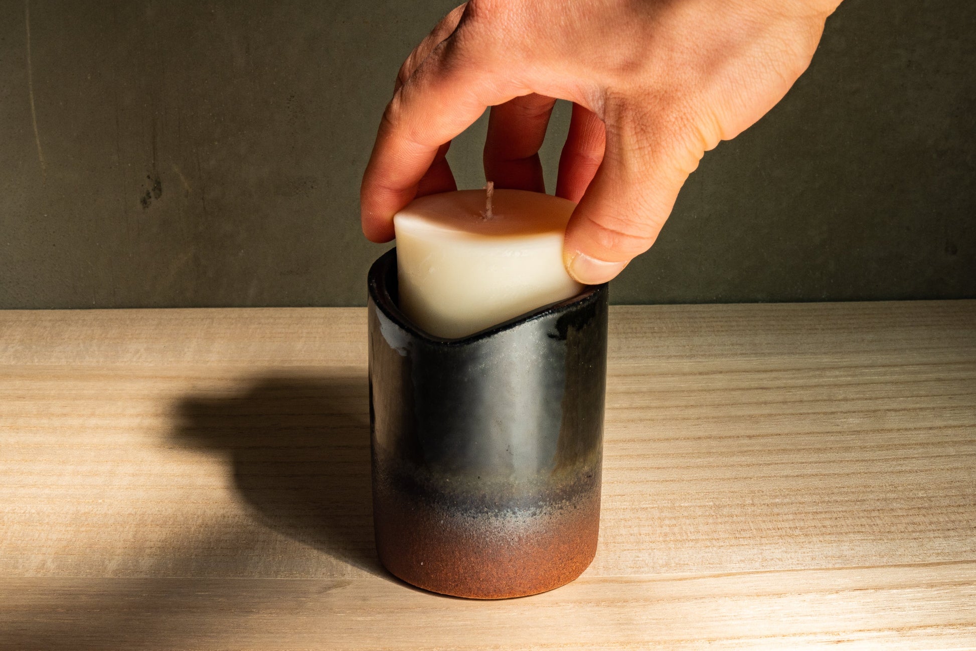 また、使用していくにつれて徐々に黒みがかっていく様子や蝋燭の火が内側で照り返す様子などは、陶器ならではの美しさが感じられます。