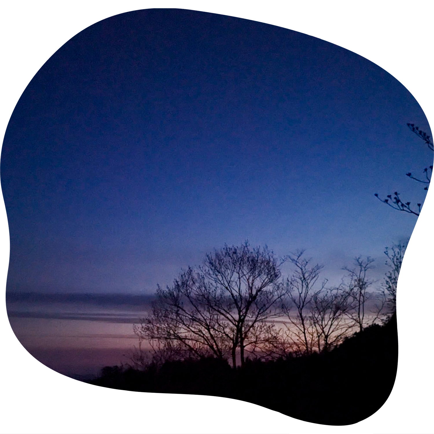 少し青みがかった夜空に旭光が滲む神秘的な情景を切り取りました。
